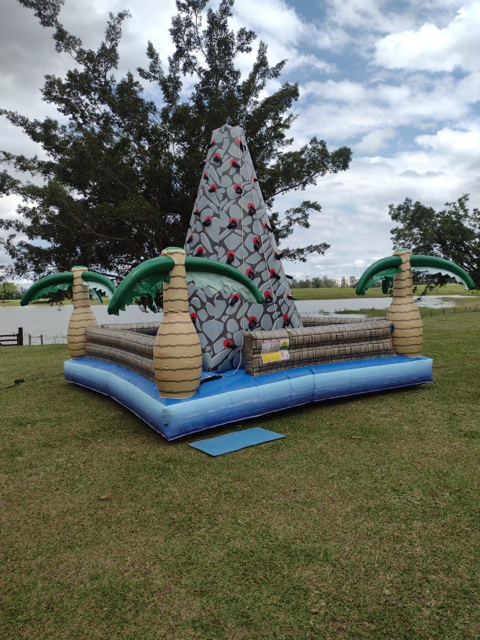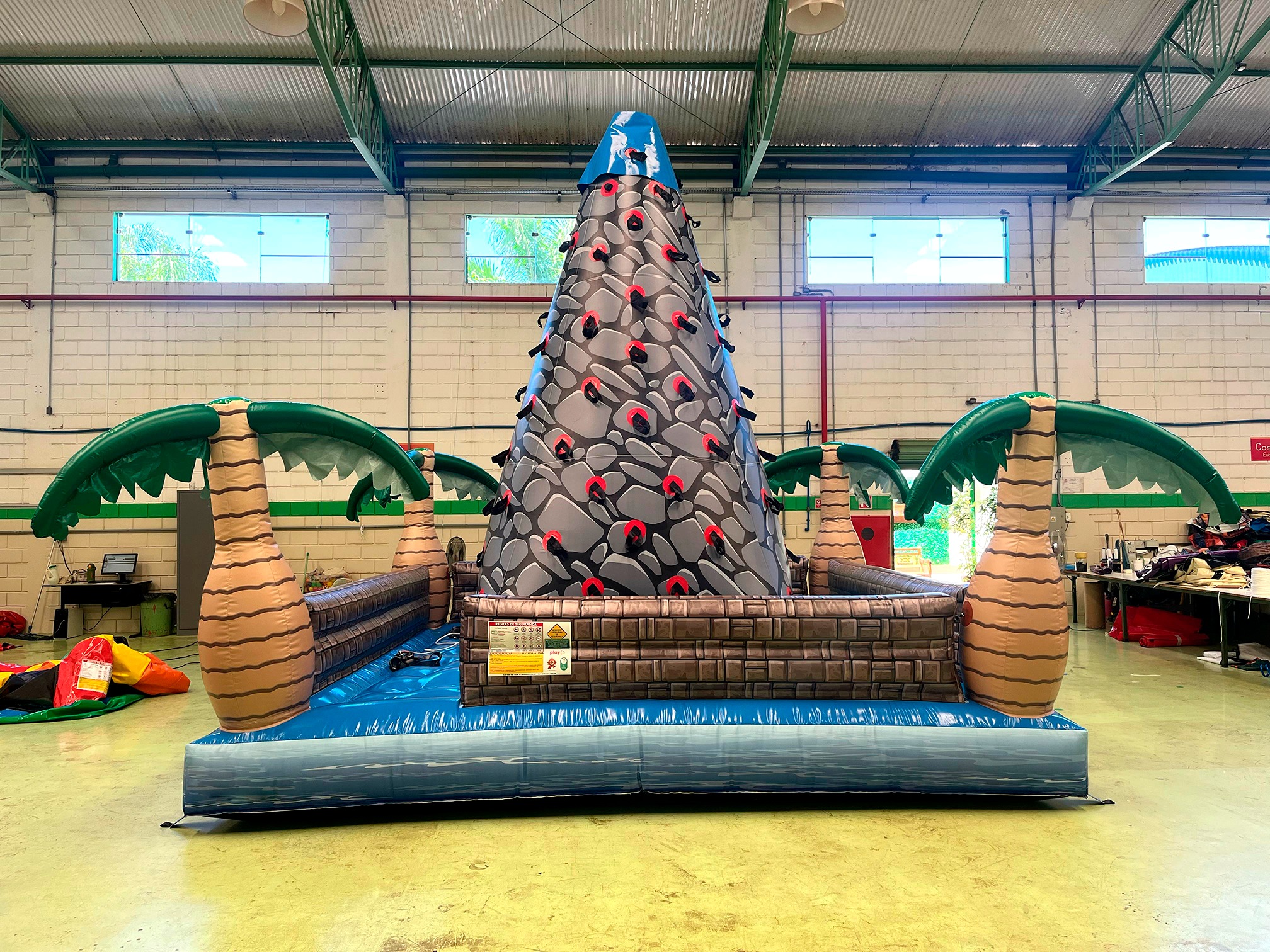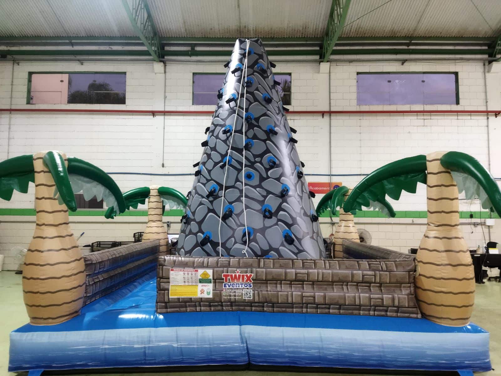 Com um design colorido e temático, o brinquedo simula uma parede de escalada inflável, onde crianças, adolescentes e adultos podem testar suas habilidades de força, equilíbrio e coordenação.