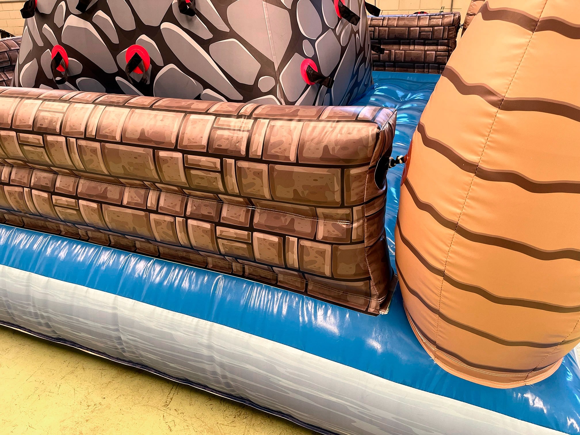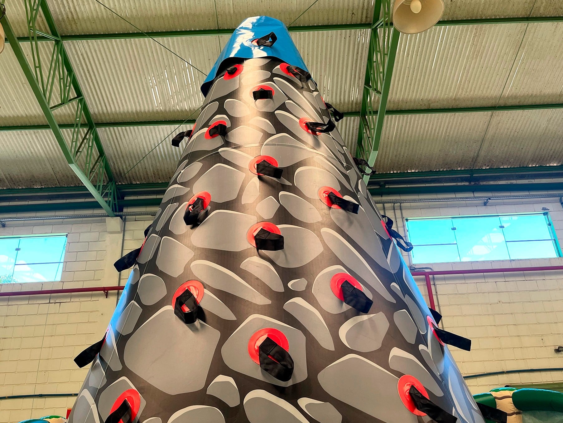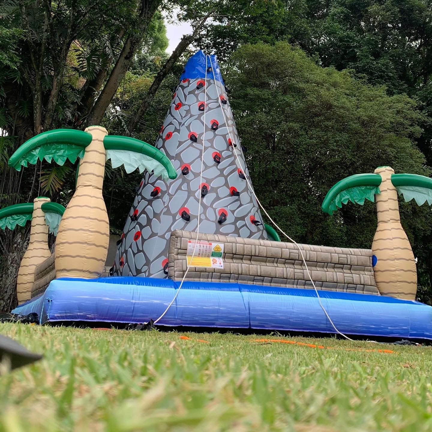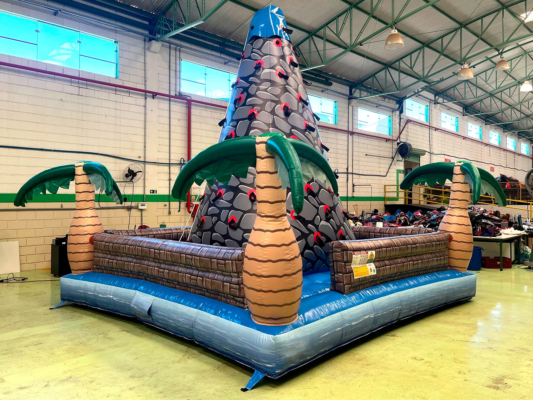 Com um design colorido e temático, o brinquedo simula uma parede de escalada inflável, onde crianças, adolescentes e adultos podem testar suas habilidades de força, equilíbrio e coordenação.
