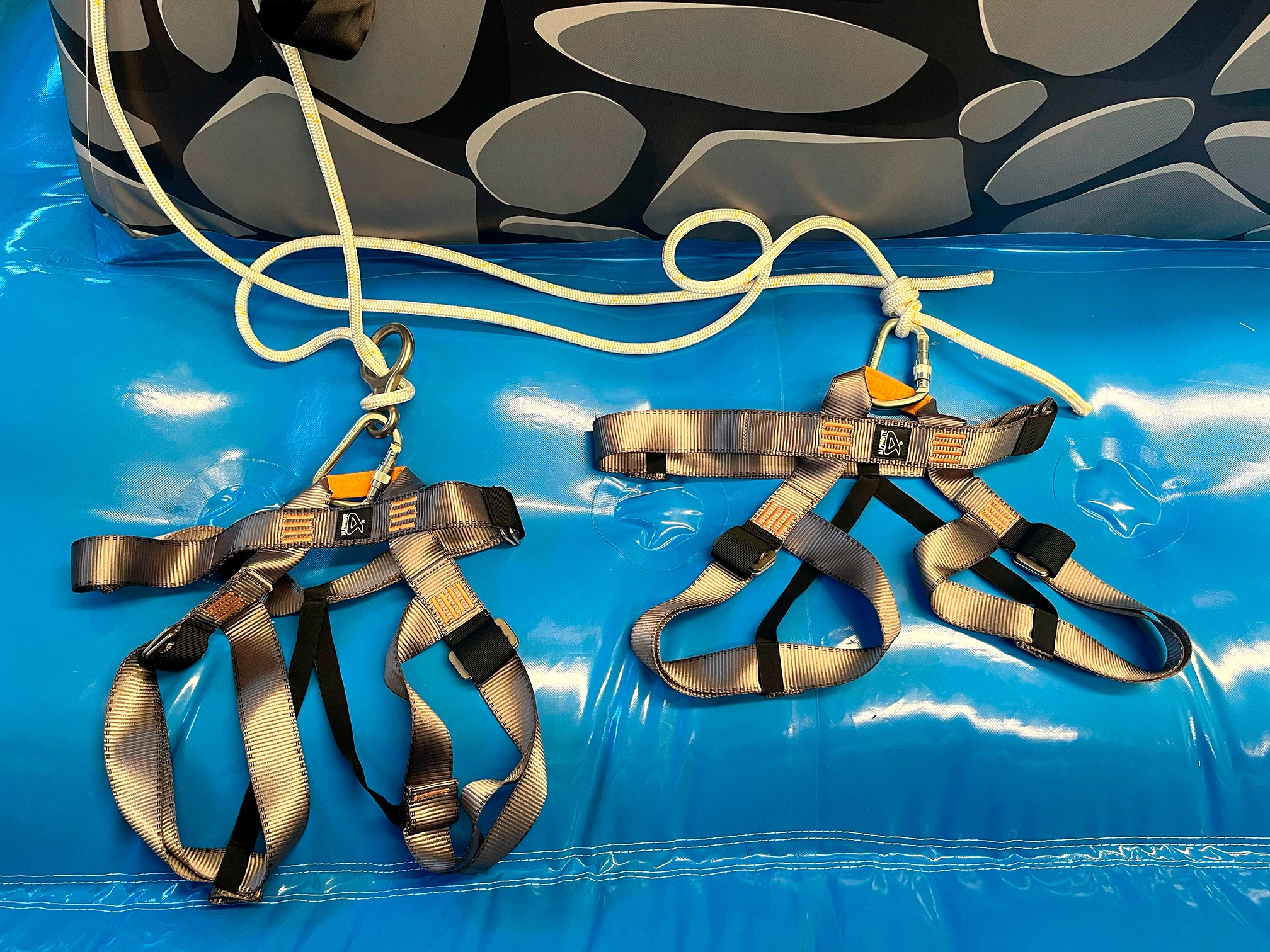 A experiência de escalar em um ambiente protegido, com base inflável que garante total segurança.