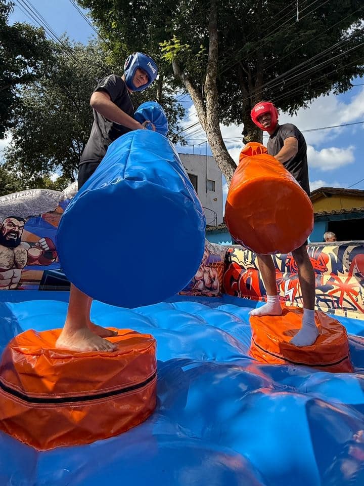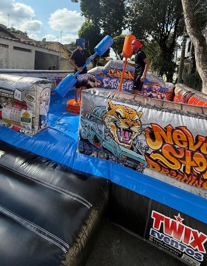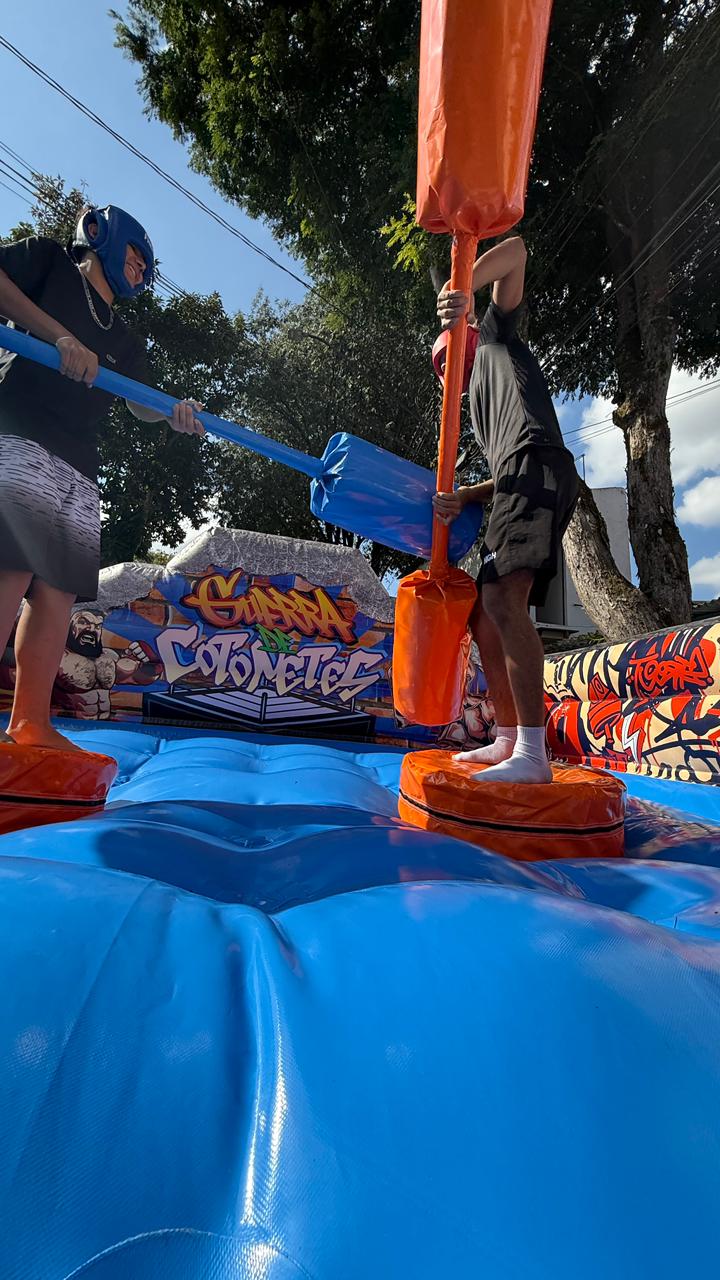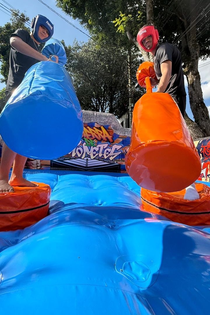 Um brinquedo interativo onde dois participantes se enfrentam em uma arena inflável segura e colorida, usando cotonetes gigantes de espuma. O objetivo é derrubar o adversário da plataforma com equilíbrio, estratégia e muitas risadas.